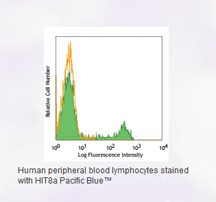 * Pacific Blue™ has a maximum emission of 455 nm when it is excited at 405 nm. Prior to using Pacific Blue™ conjugate for flow cytometric analysis, please verify your flow cytometer's capability of exciting and detecting the fluorochrome.