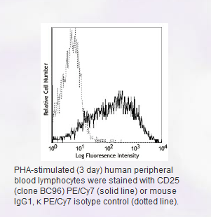 Each lot of this antibody is quality control tested by immunofluorescent staining with flow cytometric analysis. Test size products are transitioning from 20 µl to 5 µl per test. Please check your vial or your CoA to find the suggested use of this reagent per million cells in 100 µl staining volume or per 100 µl of whole blood. It is recommended that the reagent be titrated for optimal performance for each application.