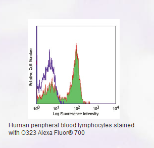 This reagent is developed for immunofluorescent staining for flow cytometric analysis; the suggested use of this reagent is ≤1.0 µg per million cells in 100 µl volume. It is highly recommended that the reagent be titrated for optimal performance for each application.