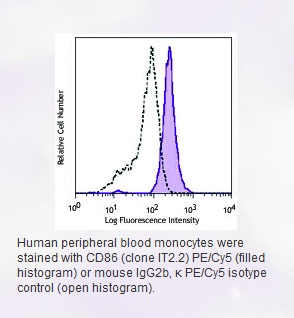 Each lot of this antibody is quality control tested by immunofluorescent staining with flow cytometric analysis. Test size products are transitioning from 20 µl to 5 µl per test. Please check your vial or your CoA to find the suggested use of this reagent per million cells in 100 µl staining volume or per 100 µl of whole blood. It is recommended that the reagent be titrated for optimal performance for each application.