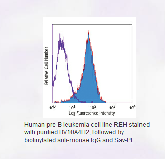 Each lot of this antibody is quality control tested by immunofluorescent staining with flow cytometric analysis. For immunofluorescent staining, the suggested use of this reagent is ≤ 0.5 µg per 106 cells in 100 µl volume. It is recommended that the reagent be titrated for optimal performance for each application.