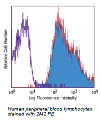 β2-microglobulin (β2M) is a 12 kD nonpolymorphic Ig like protein. It is a non-membrane-anchored glycoprotein and is noncovalently associated with 39-44 kD polymorphic heavy chains of MHC class I molecules to form HLA class I antigen complex. In association with HLA class I, β2M is expressed on all leukocytes, platelets, endothelial cells, and epithelial cells. β2M plays an essential role both in governing MHC class I molecules stability and in promoting antigen binding and presenting the antigen to CD3/TCR complex of CD8+ T cells.