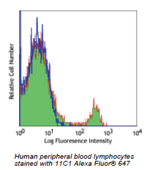 Each lot of this antibody is quality control tested by immunofluorescent staining with flow cytometric analysis. For immunofluorescent staining, the suggested use of this reagent is 5 μl per million cells or 5 μl per 100 μl of whole blood. It is recommended that the reagent be titrated for optimal performance for each application.
