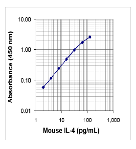 Mouse IL-4 is a pleiotropic cytokine that is produced by activated T cells, mast cells and basophils. IL-4 elicits many different biological responses, but has two dominant functions. IL-4 regulates differentiation of naïve CD4+ T cell to Th2 cells. In addition, IL-4 regulates IgE and IgG1 production by B cells.