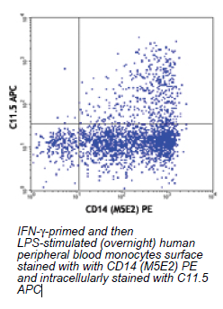 Each lot of this antibody is quality control tested by intracellular immunofluorescent staining with flow cytometric analysis. Test size products are transitioning from 20 μl to 5 μl per test. Please check your vial or your CoA to find the suggested use of this reagent per million cells in 100 μl staining volume or per 100 μl of whole blood. It is recommended that the reagent be titrated for optimal performance for each application.