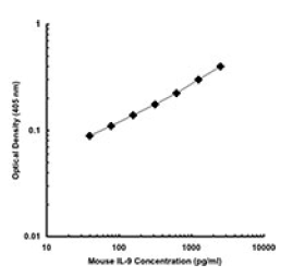 Each lot of this antibody is quality control tested by ELISA assay. For ELISA capture applications, a concentration range of 1-4 μg/ml is recommended. To obtain a linear standard curve, serial dilutions of IL-9 recombinant protein ranging from 4000 to 30 pg/ml are recommended for each ELISA plate. It is recommended that the reagent be titrated for optimal performance for each application.