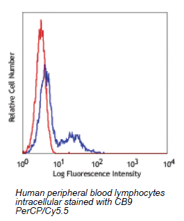 Each lot of this antibody is quality control tested by intracellular immunofluorescent staining with flow cytometric analysis. For immunofluorescent staining, the suggested use of this reagent is 5 μl per million cells or 5 μl per 100 μl of whole blood. It is recommended that the reagent be titrated for optimal performance for each application.