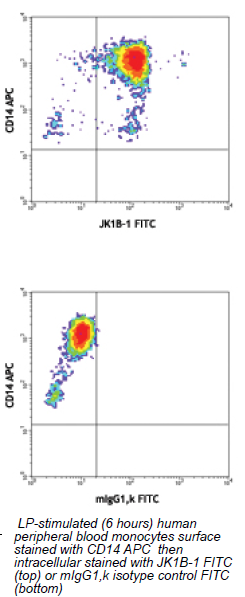Each lot of this antibody is quality control tested by intracellular immunofluorescent staining with flow cytometric analysis. Test size products are transitioning from 20 μl to 5 μl per test. Please check your vial or your CoA to find the suggested use of this reagent per million cells in 100 μl staining volume or per 100 μl of whole blood. It is recommended that the reagent be titrated for optimal performance for each application.