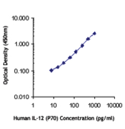 Each lot of this antibody is quality control tested by ELISA assay. For ELISA capture applications, a concentration range of 1-4 μg/ml is recommended. To obtain a linear standard curve, serial dilutions of IL-12 p70 recombinant protein ranging from 1000 to 8 pg/ml are recommended for each ELISA plate. For use as an ELISPOT capture antibody, a concentration range of 2-6 μg/ml is recommended. It is recommended that the reagent be titrated for optimal performance for each application.