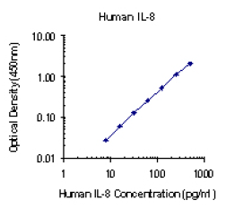Each lot of this antibody is quality control tested by ELISA assay. For ELISA capture applications, a concentration range of 2-6 μg/ml is recommended. To obtain a linear standard curve, serial dilutions of IL-8 recombinant protein ranging from 2000 to 15 pg/ml are recommended for each ELISA plate. It is recommended that the reagent be titrated for optimal performance for each application.