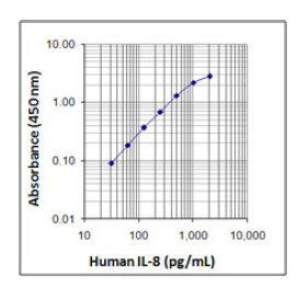 Each lot of this antibody is quality control tested by ELISA assay. For ELISA capture applications, a concentration range of 2-6 μg/ml is recommended. To obtain a linear standard curve, serial dilutions of IL-8 recombinant protein ranging from 2000 to 15 pg/ml are recommended for each ELISA plate. It is recommended that the reagent be titrated for optimal performance for each application.