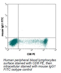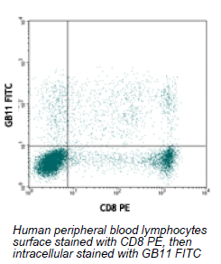 Each lot of this antibody is quality control tested by intracellular immunofluorescent staining with flow cytometric analysis. Test size products are transitioning from 20 μl to 5 μl per test. Please check your vial or your CoA to find the suggested use of this reagent per million cells in 100 μl staining volume or per 100 μl of whole blood. It is recommended that the reagent be titrated for optimal performance for each application.