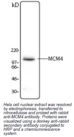 Each lot of this antibody is quality control tested by Western blotting. Western blotting, suggested working dilution(s): Use 10 μl per 5 ml antibody dilution buffer for each mini-gel. It is recommended that the reagent be titrated for optimal performance for each application.