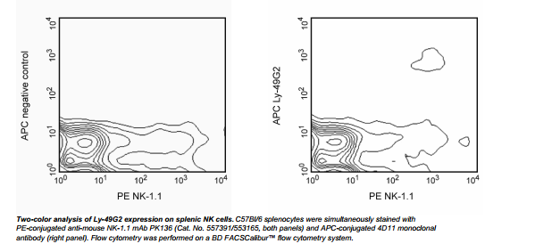 The 4D11 antibody reacts with Ly-49G2 (also known as LGL-1), an inhibitory receptor which is expressed on subsets of natural killer (NK)