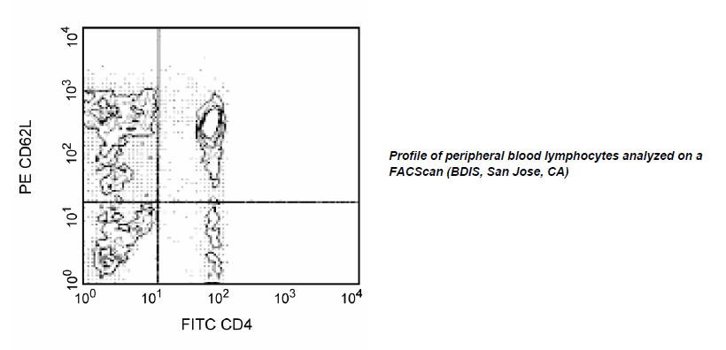 Reacts with a 76-95 kDa glycoprotein referred to as L-selectin or LECAM-1. CD62L is expressed on neutrophils, monocytes, T- and