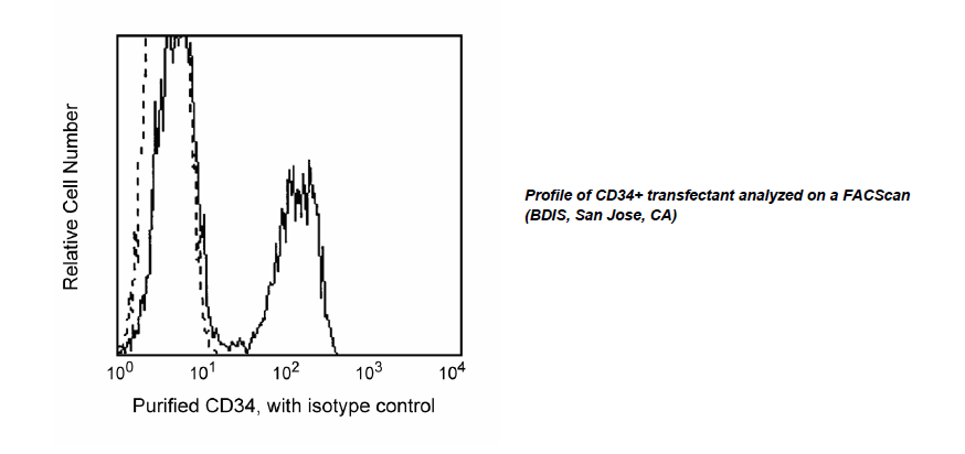 Reacts with a single-chain 105-120 kDa heavily O-glycosylated transmembrane glycoprotein expressed on a hemotopoietic progenitor cells,