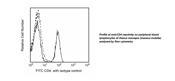 monocytes, of both rhesus and cynomolgus macaque monkeys. Cross-reactivity on both lymphocytes and monocytes (weak) of baboon is also
