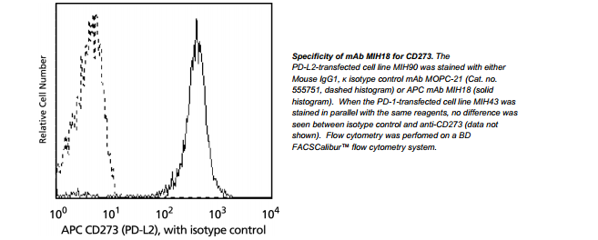 The MIH18 monoclonal antibody specifically binds to CD273, the Programmed Death Ligand 2 (PD-L2). PD-L1 and PD-L2 are newly