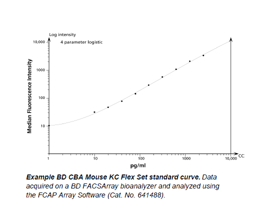 This BD™ CBA Flex Set contains one vial each of Capture Bead and PE Detection Reagent and two vials of Standard. The Capture Bead and