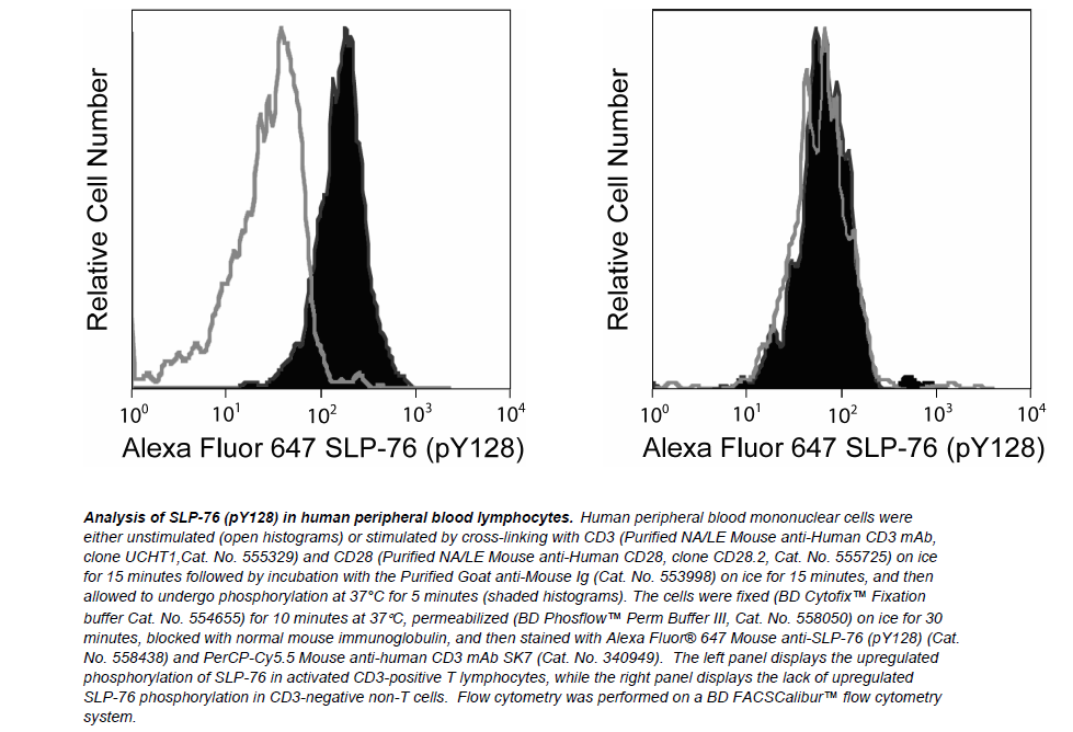 SLP-76 (SH2 domain-containing Leukocyte Protein of 76 kDa) is a tyrosine phosphoprotein that is involved in the T cell receptor (TCR)