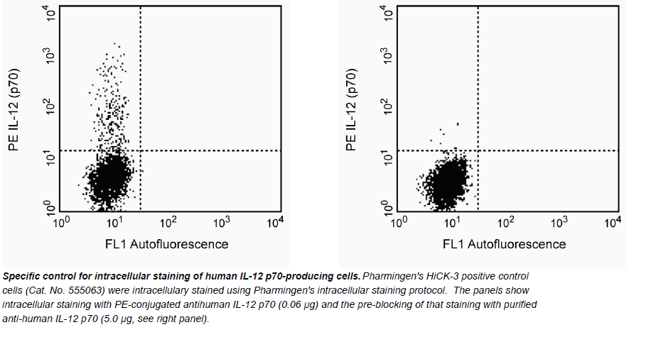 The 20C2 antibody reacts with the biologically active form of human IL-12 p70 heterodimer, but not with the p40 monomer or homodimer.