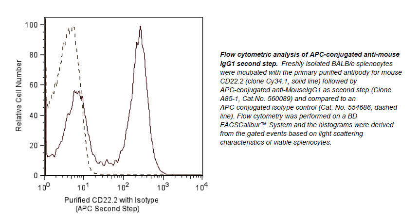 5.The antibody was conjugated to APC under optimum conditions, and unconjugated antibody and free APC were removed.