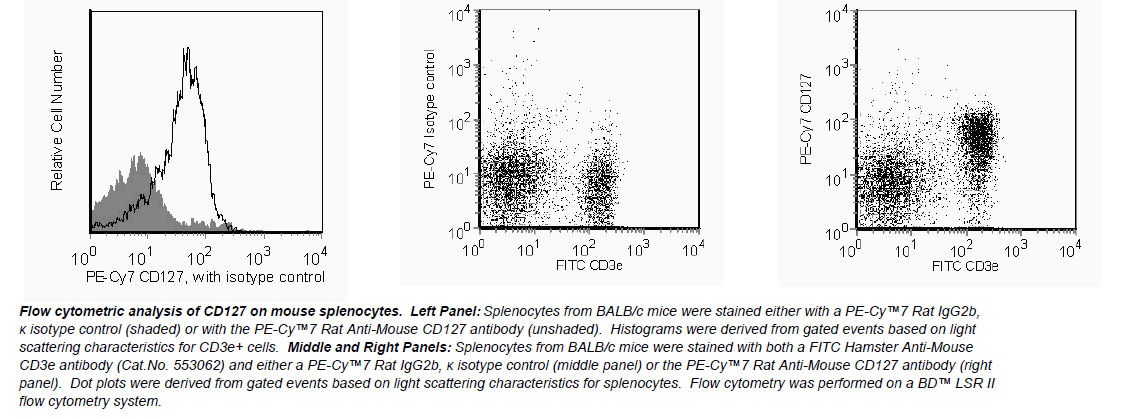 The SB/199 monoclonal antibody specifically binds to mouse CD127, the 65-75 kDa type-I transmembrane protein IL-7Rα. The high affinity