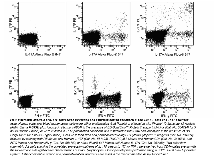 activated T cells including differentiated CD4+ T helper 17 (Th17) cells. Activated Th17 cells can express disulfide-linked IL-17F and IL-17A