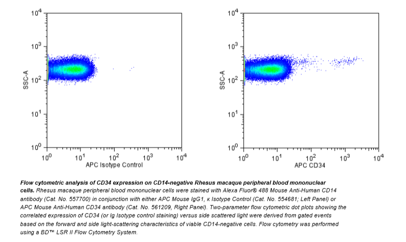 The 563 monoclonal antibody specifically binds to CD34. CD34 is a single-chain 105-120 kDa heavily O-glycosylated transmembrane