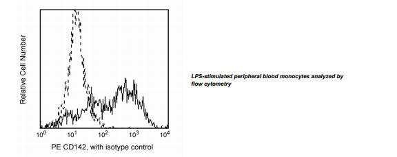 5.The antibody was conjugated with R-PE under optimum conditions, and unconjugated antibody and free PE were removed.