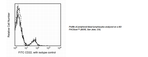 Reacts with the 130-140 kDa glycosylated type I integral membrane protein present on the surface of mature B cells. CD22 is expressed in the