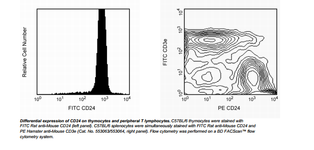 activation of splenic B cells with LPS, but not with CD154 (CD40 Ligand). The majority of thymocytes express high levels of CD24, while