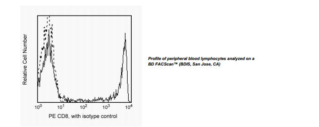 5.The antibody was conjugated with R-PE under optimum conditions, and unconjugated antibody and free PE were removed.