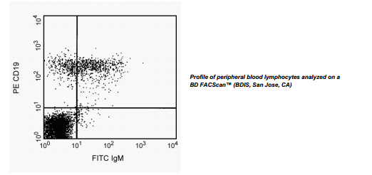 The G20-127 monoclonal antibody specifically binds to the heavy chain of human IgM. It does not react with other immunoglobulin heavy