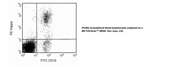 5.The antibody was conjugated with R-PE under optimum conditions, and unconjugated antibody and free PE were removed.