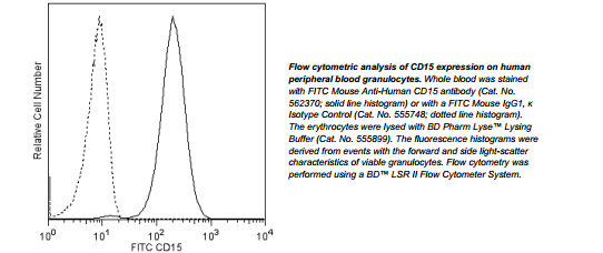 on lymphocytes or basophils. CD15 plays a role in mediating phagocytosis, bactericidal activity and chemotaxis. Most CD15 antibodies are