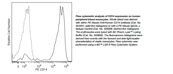 chain glycoprotein expressed at high levels on monocytes. Additionally, this CD14-specific antibody reacts with interfollicular macrophages,