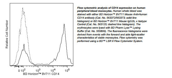 The antibody was conjugated to BD Horizon™ BV711 which is part of the BD Horizon™ Brilliant Violet™ family of dyes. This dye is a