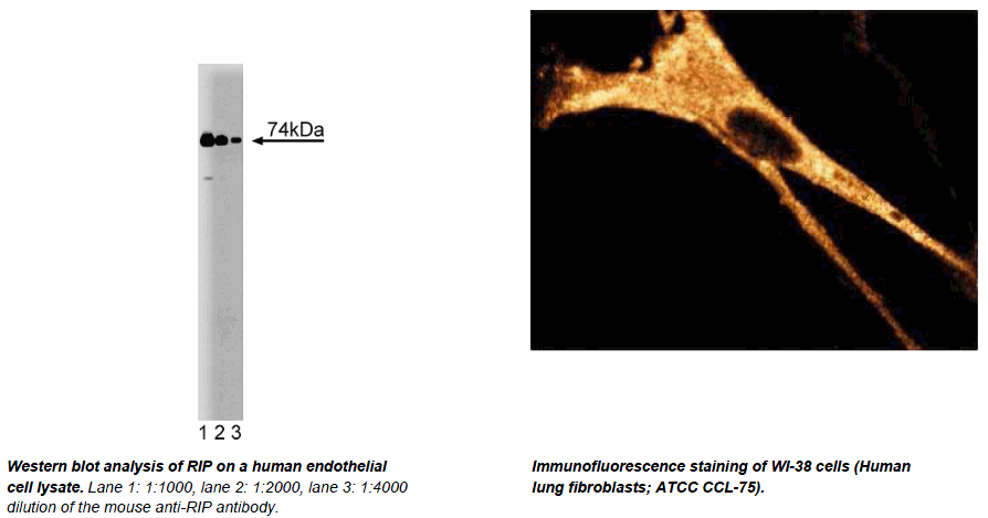 and TNF-R2). A 74 kDa member of this family protein named RIP (Receptor Interacting Protein) contains an N-terminal region with