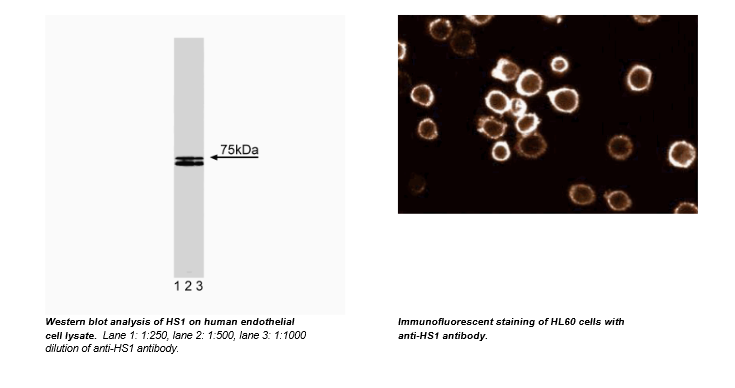 HS1 (lck-binding protein 1 (lckBP1)) is a protein of 486 amino acids with homology to cytoplasmic tyrosine kinases. The protein contains an
