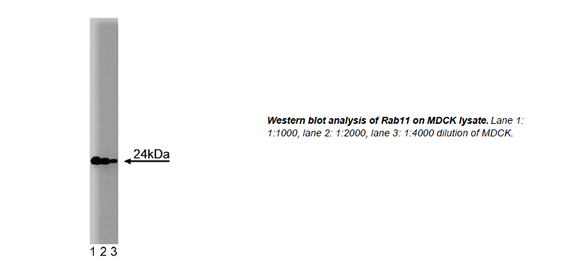 gene encodes a 24 kDa protein of 214 amino acids that has been detected in liver, brain, testis, spleen, and heart. Rab11 protein was isolated