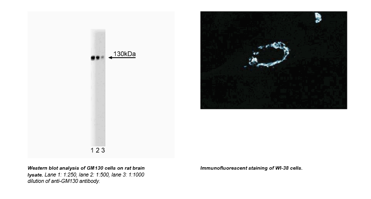 attachment sites for membranes and other Golgi proteins. The 35/GM130 monoclonal antibody recognizes GM130, regardless of