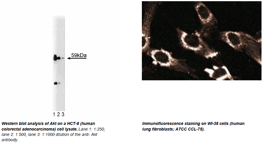 Akt/PKB mRNA has been reported to be expressed in a wide variety of cell lines and has been detected in porcine brain, heart, liver, kidney,