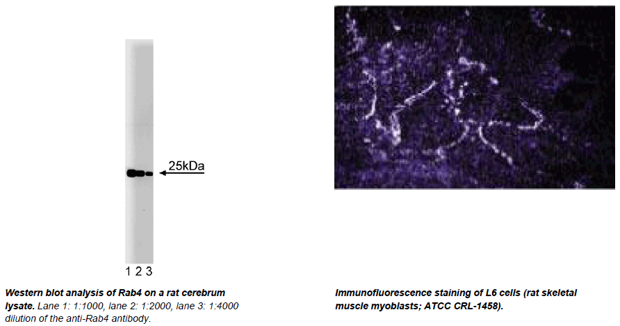 glucose transport into rat adipocytes. Rab4 has also been reported to be associated with vesicles that contain GLUT4, a glucose transporter