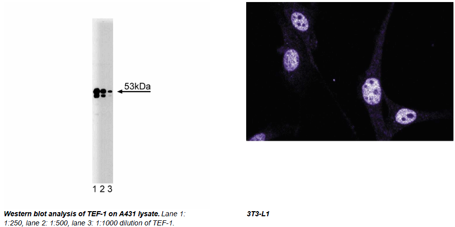 TEF-1 (transcription enhancer factor-1) is a member of a family of transcription factors that contain an evolutionarily conserved DNA binding