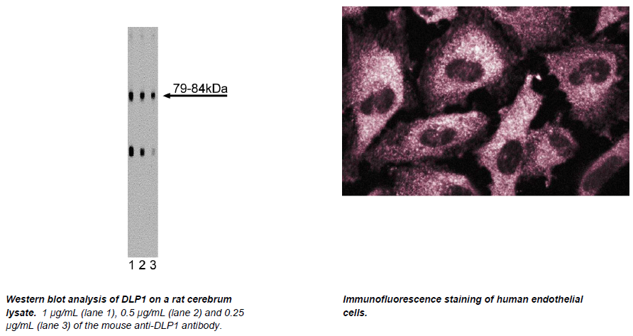 Unlike dynamins I-III which co-localize with endocytotic vesicles, DLP1 is found aligned with microtubules and with the endoplasmic