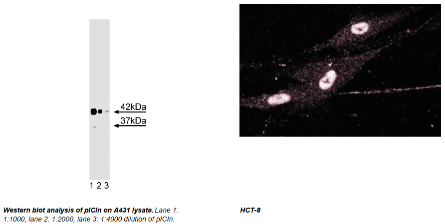 addition, pICln interacts with, and is phosphorylated by, a constitutively active cytosolic protein kinase. Therefore, pICln is thought to be a
