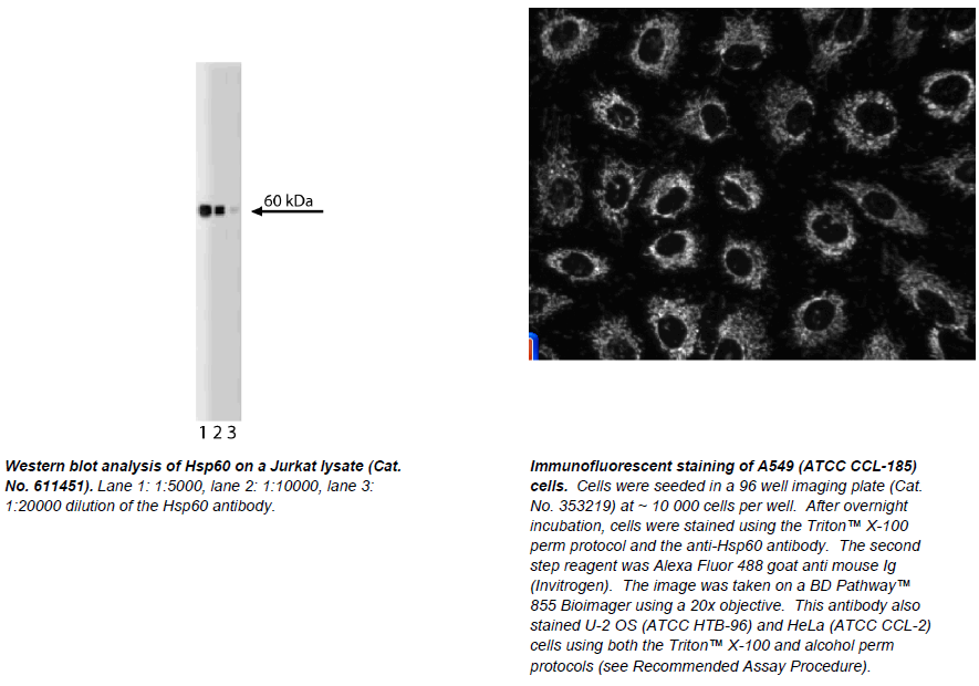stress-induced (Hsp27 and Hsp72) proteins. Hsp60 is localized to the mitochondria, where it promotes mitochondrial protein folding and