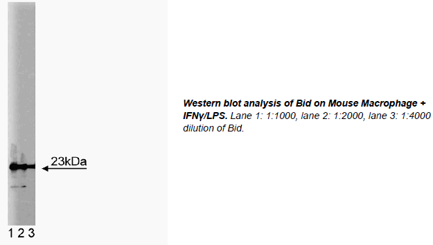 Bcl-2 family death agonist that heterodimerizes with either agonists (Bax) or antagonists (Bcl-2). Bid contains a centrally located BH3 domain