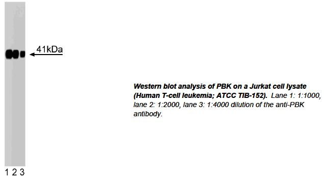 vitro, PBK is phosphorylated by Cdc2/cyclin B. PBK can bind to the PDZ domain-containing protein, Dlg, and can phosphorylate p38